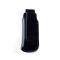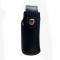 Etui de ceinture en cuir noir surpiqué rouge et bouton pression