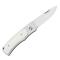 Dureté de la lame 62 HRC en acier Elmax. Lame lisse et blanche avec possibilité d'ouverture avec entaille d'ongle sur la lame.