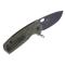 Verrouillage par Linerlock. Manche 11cm FRN® vert (fibre de verre et nylon) noir ergonomique pour une meilleure prise en main surtout au niveau de l'index