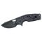 Couteau de poche Fox Suru aluminium noir Lame en acier N690Co d'une dureté Rockwell de 58-60 Hrc La lame est en finition """"stonewashed"""" Ouverture par """"flipper"""" Manche ajouré en aluminium, couleur noire Clip Dimensions : Longueur de Lame : 6 cm Longueur totale : 14,8 cm Epaisseur de lame : 4 mm Poids : 85 g
