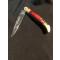 Couteau de poche Le Bougna 22 cm ouvert manche en bois coloré rouge et tir bouchon.