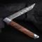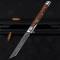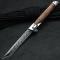 couteau pliant motif damas damascus laser manche bois avec étui camping survie pêche chasse #0006