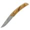 Lame blanche et lisse en acier inoxydable X50CrMoV15, un couteau EDC pour toutes vos activités au quotidien. Le manche en bois d'olivier est enjolivé par un ressort ciselé.