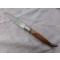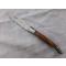 On ne peut pas dire qu'il soit léger mais il ne se fait pas sentir en poche(si tant est qu'on ait encore le droit d'avoir un couteau en poche).Son allure générale le démarque de ce qui se fait actuellement la mitre de tête en acier poli et le bois teinté bleu foncé ne sont pas étrangers évidemment à cet aspect. Les ajustages de platine ressort n'appellent aucun reproche .La lame se situe pile poil au milieu de son logement ce qui n'est pas toujours le cas et il coupe :à ce sujet la remarque précédente peut aussi s'appliquer .Donc il est parfait sauf que l'on ne peut pas l'ouvrir sans se casser les ongles ou se couper tellement le ressort est dur ;rien n'y fait même les gouttes d'huile.