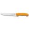 Serie Swibo : des couteaux professionnels Victorinox, convenant aussi bien aux chefs qu'aux bouchers Couteau à saigner - lame rigide - 20 cm Confortable, antidérapant, sans micropores ni microfissures, résistant à la stérilisation. Ses performances de coupe, sa souplesse toujours adaptée à la fonction, sa robustesse et sa longévité lui valent une fidélité indéfectible des spécialistes. Le premier couteau professionnel à manche jaune signal, ergonomique et sûr, hygiénique, injecté sur une lame en acier fin inoxydable poli miroir.