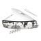 Le manche blanc de ce modèle spécial Heidiland 2018 présente une jolie fresque en ombre chinoise du pays de Heidi Ce couteau suisse SWIZAde la série D01 au design révolutionnaire à 360° et à la forme incurvée permet une prise en main optimale grâce à son manche anti-glisse de couleur blanche à la texture très agréable au toucher. Le design savamment étudié offre un accès direct aux outils, perforés pour faciliter leur ouverture aussi bien pour un gaucher qu?un droitier. La croix blanche sert à fermer la grande lame du couteau par une simple pression. Lames en acier inoxydable 440 avec une dureté Rockwell de 57 HRC Le couteau SWIZA D03 comprend : 1 lame de 75 mm avec blocage de sécurité 1 alène coupante avec poinçon 1 aiguille à chas 1 tire-bouchon qualité sommelier 1 pincette Données techniques Longueur du manche : 9,5 cm Longueur de la lame 7,5 cm Poids 88 g Fabriqué en Suisse