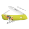 Le manche vert de cette Edition Limitée Printemps 2018 est orné d'une jolie suissesse en habit traditionnel Ce couteau suisse SWIZA de la série D01 au design révolutionnaire à 360° et à la forme incurvée permet une prise en main optimale grâce à son manche anti-glisse à la texture très agréable au toucher. Le design savamment étudié offre un accès direct aux outils, perforés pour faciliter leur ouverture aussi bien pour un gaucher qu?un droitier. La croix blanche sert à fermer la grande lame du couteau par une simple pression. Lames en acier inoxydable 440 avec une dureté Rockwell de 57 HRC Le couteau SWIZA D01 comprend : 1 lame de 75 mm avec blocage de sécurité 1 alène coupante avec poinçon 1 aiguille à chas 1 tire-bouchon qualité sommelier 1 pincette Données techniques Longueur du manche : 9,5 cm Longueur de la lame 7,5 cm Poids 66 g Fabriqué en Suisse