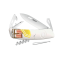 Le couteau suisse SWIZA D03 décliné aux DESIGN ESTIVAL Couteau Suisse avec 11 fonctions au design révolutionnaire à 360° et à la forme incurvée permet une prise en main optimale grâce à son manche anti-glisse de couleur blanche à la texture très agréable au toucher. Le design savamment étudié offre un accès direct aux outils, perforés pour faciliter leur ouverture aussi bien pour un gaucher qu?un droitier. La croix blanche sert à fermer la grande lame du couteau par une simple pression. Lames en acier inoxydable 440 avec une dureté Rockwell de 57 HRC Le couteau SWIZA D03 comprend : 1 lame de 75 mm avec blocage de sécurité 1 alène coupante avec poinçon 1 aiguille à chas 1 décapsuleur avec un tournevis N°3 et un plioir à fil 1 ouvre-boîte avec tournevis n°1 1 tire-bouchon 1 pincette Fabriqué en Suisse