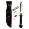 Ce couteau de survie est entièrement fabriqué en métal et est livré avec un étui en nylon. Le manche contient divers accessoires de survie. Il est équipé d'une boussole. Une pierre à aiguiser est également fournie pour affûter la lame.