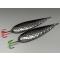 Celle-ci a une particularité, elle est très large ( 3 cm ) et lui confère ainsi une nage planante et malgré ses 25 grs, elle descend lentement dans l'eau.