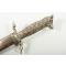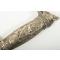En bon état général et solide, avec quelques zones d’usure au placage argenté. La lame ne présente que des traces résiduelles de sa décoration d’origine en « eau de Damas ». Il est évident qu’un petit couteau ou une fourchette était autrefois logé(e) dans le fourreau, mais cet élément est désormais manquant.