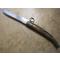 Beau modèle , fin , poignée en corne rivetée. Lame acier fine , solide et de bonne facture (laissée jus), travail de la forme.Pas de jeu de la poignée .