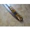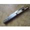 Lame acier fin et de bonne facture (nettoyée mais laissée jus), travail de la forme. pas de jeu de la poignée , un des décalcomanie est abimé.L'autre est complet jauni par les années. du haut.