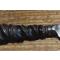 Redoutable miséricorde XVI eme siècle destinée à percer les cotes de maille, forte lame triangulaire, fusée en corne noire torsadée en deux pièces, pommeau rond enveloppant sur lequel la soie est matée, la forme de la lame très aigue et le pommeau rond permettent de pousser avec une redoutable puissance pour traverser les cotes de maille et les pourpoints de cuir renforcés lors des combats au corps à corps. Pas de fourreau l'objet se portant probablement directement enfilé dans le ceinturon ou dans la botte. Longueur totale 315 mm.