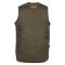 80% polyester, 20% coton, filet d'aération sur les côtés 100% polyester. Renforts aux épaules, 2 grandes poches basses, cartouchières extérieures 18 tubes, anneau porte-gibier et grand carnier avec doublure étanche et lavable.
