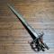 Lourde et solide lame forgé à double tranchant bien coupante, un léger coup qui peut se rectifier .