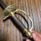 Monture en laiton à une branche de garde , clavier articulé système à pompe parfaitement fonctionnel , le clavier rabatable porte le poinçon A B et poignard à la Mameluck au milieu de Alexandre Bès armurier et fourbisseur à Paris . L'autre clavier est orné du coq Gaulois tenant dans ses serres le fuseau de Jupiter et le globe terrestre, bien riveté.
