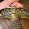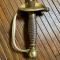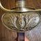 Épée dite « épée française à ciselure ». Monture en laiton doré. Branche de garde lisse . Pommeau gravé en relief d'une forte fleur de lys. Poignée en bois entièrement filigranée cuivre en chevron , viroles en laiton doré. Clavier décoré en relief des Armes de France trois fleurs de Lys surmonté de la couronne Royale entourées de deux palmes. Contre-clavier monogrammé À.M et décoré de palmettes et volutes.