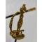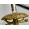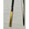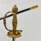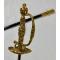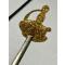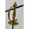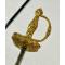 Épée de gentleman ou de diplomate de fabrication française, d'une qualité exceptionnelle, à la poignée entièrement ajourée et dorée au mercure, ornée de quillons travaillés et d'une garde ajourée et gravée. La lame arrondie, de style français, présente un petit ricasso portant les initiales RYM et l'année 1776, ainsi qu'une marque indéterminée sur l'avers. Elle est accompagnée d'un certificat d'authenticité très descriptif, établi par un antiquaire renommé en 1989, année de sa vente. Elle conserve son fourreau en cuir à poignée gravée et dorée. Le bouton du fourreau est orné d'un visage de femme gravé. L'ensemble est en magnifique état, avec seulement une petite déchirure dans le cuir du fourreau, facilement réparable. Longueur totale : 94 cm.