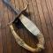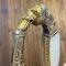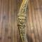 EPEE d'OFFICIER, monture en bronze doré à la feuille. Arc de jointure ciselé en son milieu d'un masque léonin. Fusée de nacre naturelle cannelée aux beaux reflets . Clavier ovalaire à décor de coq de profilt drapeau. Lame droite fine à décor sur sa moitié de bleuis motifs de rinceaux.