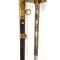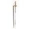 Monture en bronze doré, garde à une branche décorée en son sommet d'une tête d'animal mythologique, calotte en forme de casque empanaché, croisière décorée d'une figure représentant Neptune et au revers d'une ancre de marine sur le noeud de corps, deux quillons droit, fusée en bois entièrement filigrané de cuivre à viroles de laiton, clavier bivalve décoré en son centre d'une grande de marine, de feuilles d'acanthe, bordé d'une moulure d'encadrement en relief torsadée avec feuilles d'acanthe. Quillon décoré d'une toile d'araignée striée. Lame à un pan creux, longueur 80,3 cm, gravée, dorée et bleuie sur son premier tiers de trophées d'armes et de décors floraux, signée au talon « S. K. ». Fourreau en cuir noirci à trois garnitures en bronze anciennement doré, découpées et décorées en suite de frises, bouton de chape en palmette, dard à godrons frotté.