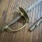 Épée d'Officier. Monture en laiton doré . Pommeau en casque empanaché, fusée bois entièrement filigrané en cuivre et virole laiton ciselé . Lame triangulaire signe COULEAUX & co KLINGENTHAL et poinçonné à deux reprises.