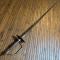 Lame triangulaire à pans creux, gravures notamment trophées d'armes , anciennement doré à l'or infime reste au talon.