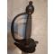 Monture en laiton argenté. Garde à une branche décorée de filets ondulés. Pommeau ovale décoré sur les côtés de filets tout comme la branche de garde. Poignée en bois entièrement filigrané d'argent. Viroles argentées. Clavier bivalve bordé d'une moulure saillante à filets ondulés.