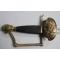 Garnison en bronze doré, coquille représentant la Déesse grecque Aphrodite sur la mer où elle est née. en forme de casque à plumes, manche carré en ébène ; Il y a d'anciennes réparations sur le cockpit.