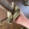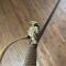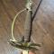 Monture bronze , garde à une branche, plateau fixe plamette, pommeau en casque heaume empanaché, fuseee bois recouverte d'un double filigrane cuivre en chevron tressé aux extracteur d'origine .