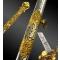 Le fourreau en fer nickelé, il est garni de deux bracelets de bélière en laiton doré et ciselé. Le premier, à double anneaux, porte la mention «Pax aut Bellum», le second à anneau simple, figure le monogramme «PM» renvoyant aux initiales du «Patriarchs Militant».