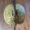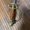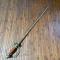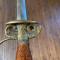 Fusee en bois à filigrane cuivre postérieur extrémité tressée son d'origine , pommeau bronze sculptée St Jacque , quillons courbé , claviers bival en bronze décoré de scènes d'animaux et feuillages au repoussé . Lame lenticulaire avec quelques vestiges de gravures. Lame épointée.