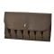 Étuis à cartouches en cuir bovin vielli pour 7 cartouches calibre 12, passants ceinture, fermeture par bouton-pression.