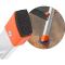Les surfaces des marches sont traitées par poudrage en noir et les raccords sont en plastique orange, tous inoxydables