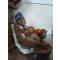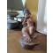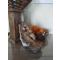 Écureuil empaillé par un taxidermiste pro. Assis sur une pierre en train de casser une noisett et les pieds sur une table en bois. Avec bonnet en laine. Bel objet déco.