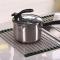 Pour gagner de la place dans votre petite cuisine, il suffit de dérouler cet égouttoir en acier et de le poser sur l'évier. Il tient bien en place et la vaisselle s'écoule directement dans l'évier. C'est également très pratique pour laisser égoutter les fruits ou légumes que vous venez de laver. Sur une table ou un plan de travail, ce tapis déroulable peut également être utilisé comme dessous de plat pour protéger la surface de la chaleur. Il est assez grand pour y poser un plat à tarte ou une plaque de four. Le revêtement en silicone en fait un ustensile hygiénique et antidérapant. Après utilisation, enroulez simplement le tapis pour un rangement gain de place.