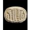 EGYPTIAN WHITE STEATITE SCARABOID: UDJAT EYE in the shape of an udjat eye; the base with hieroglyphics reading "great and enduring is the name of Re".