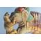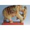 Éléphant bois sculpté polychrome Léopard Chasse Inde XIXe siècle