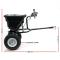L'épandeur peut être attelé à un tracteur de pelouse.