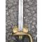 Marquage en travers de lame. Cette dernière est non oxydée mais à reçu quelques légers chocs sur le fil , demandera une reprise si l'on le juge nécessaire. Très belle poignée galuchat et filigrane laiton. Quelques chocs ont apportés de modestes déformations à la poignée. Le clavier est mobile, l'arrêtoir fonctionne. Numéro 54, idem à la base de la poignée et sur le haut de la chape du fourreau.