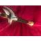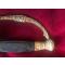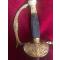 Épée de CHOUAN de chevau légère ou maison du ROI 1815 /1830 même clavier que les épées de sorti des PAGES / voir fascicule XXV ARIES 1978/. Le clavier porte les armes de France accompagné de quatre petites chouettes de chaque côté rappelle la chouannerie quillon en forme de chouette le pommeau porte l’attribut des chevaux légérs fusée en palissandre quadrillé état de la dorure 95% magnifique lame. ICB DE 81cm l 2.1cm large. Bleue et or 75%. Quelques petites taches sans aucune gravité