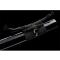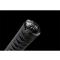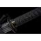 La poignée, mesurant 27 cm, est fabriquée à partir de bois dur enveloppé de fausse peau de rayon noir, complétée par une corde en polyester noir. La garde (Tsuba) et les autres éléments métalliques sont en fer, ajoutant une touche d'authenticité et de solidité à l'ensemble.