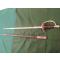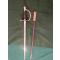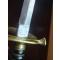Épée d´ Officier Portuguais d ´Infanterie modéle 1885, fabriquée á 1886. monture laiton doré á une branche ciselée, fusée corne ( ou bois) filigrané , contre clavier pas mobile, lame droite de 78cm, avec fourreau cuir fragile , embouchoir substituée .Lâme avec la date de 1886 et marques d´épreuve de Toledo ( Espagne) Les ciselée avec symboles martiaux de qualitée.