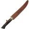 Lame en acier Damas 256 couches : La lame de style sabre en acier Damas offre un motif distinctif et une excellente performance de coupe. La dureté estimée de l'acier est de 58-60 HRC, assurant une bonne tenue du tranchant.
