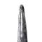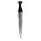 La moitié de la lame, partie inférieure possède un cartouche avec cinq lignes parallèles, verticales incluant quatre rangées de triangles bout à bout, dont un sur deux est décoré de ligne fines et serrées.