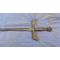 Épée maçonnique flamboyante de vénérable maître. Cette épée est posé pendant tout la tenue maçonnique devant le vénérable maître et est utilisé pour toute les cérémonies par le vénérable maître. Je n'ais pas la date de fabrication mais elle semble être de fin 19 début 20 siècle. Le pommeau est en laiton, la lame est en fer légèrement piquée en surface, mais possibilité de la restaurer. Longeur de la lame : 84 cm