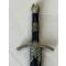 Cette épée miniature est une pièce décorative richement ornée, inspirée de l’esthétique médiévale et héraldique. Pensée avant tout pour la collection, l’exposition ou comme objet de bureau, elle séduit par la finesse de ses motifs et son équilibre visuel.