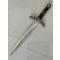 Le pommeau sculpté, à la forme évocatrice et ajourée, apporte une signature forte à l’ensemble. Il est complété par une garde courbée finement décorée, aux entrelacs médiévaux, renforçant le caractère noble et ancien de la pièce.