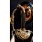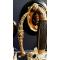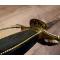 Le pommeau se termine par un lion, plaquettes en bois quadrillées sur les plats et lisse à rainures sur les côtés, bordures en bronze (fêle au plaquettes