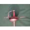 Épée ( rapiére) de garde ( ou Taza) Peninsulaire du XVII siécle, de « coupes en forme de marguerite ». Les coupes sont découpées en quatre sections. Les quartiers les plus larges sont reliés à la coupe par deux bras de chaque côté. Comme pour confirmer la terminologie, ces bras présentent, à leur point de jonction avec la coupe, la forme de mains aux doigts gravés. Il s'agit d'une manière intéressante et originale d'assembler les éléments de la poignée . Pommeau aplati, poignée en bois simple. Lame droite à double tranchant, avec une rainure sur les deux faces qui court sur toute la longueur de la lame.Chocs á la lãme trés usée.